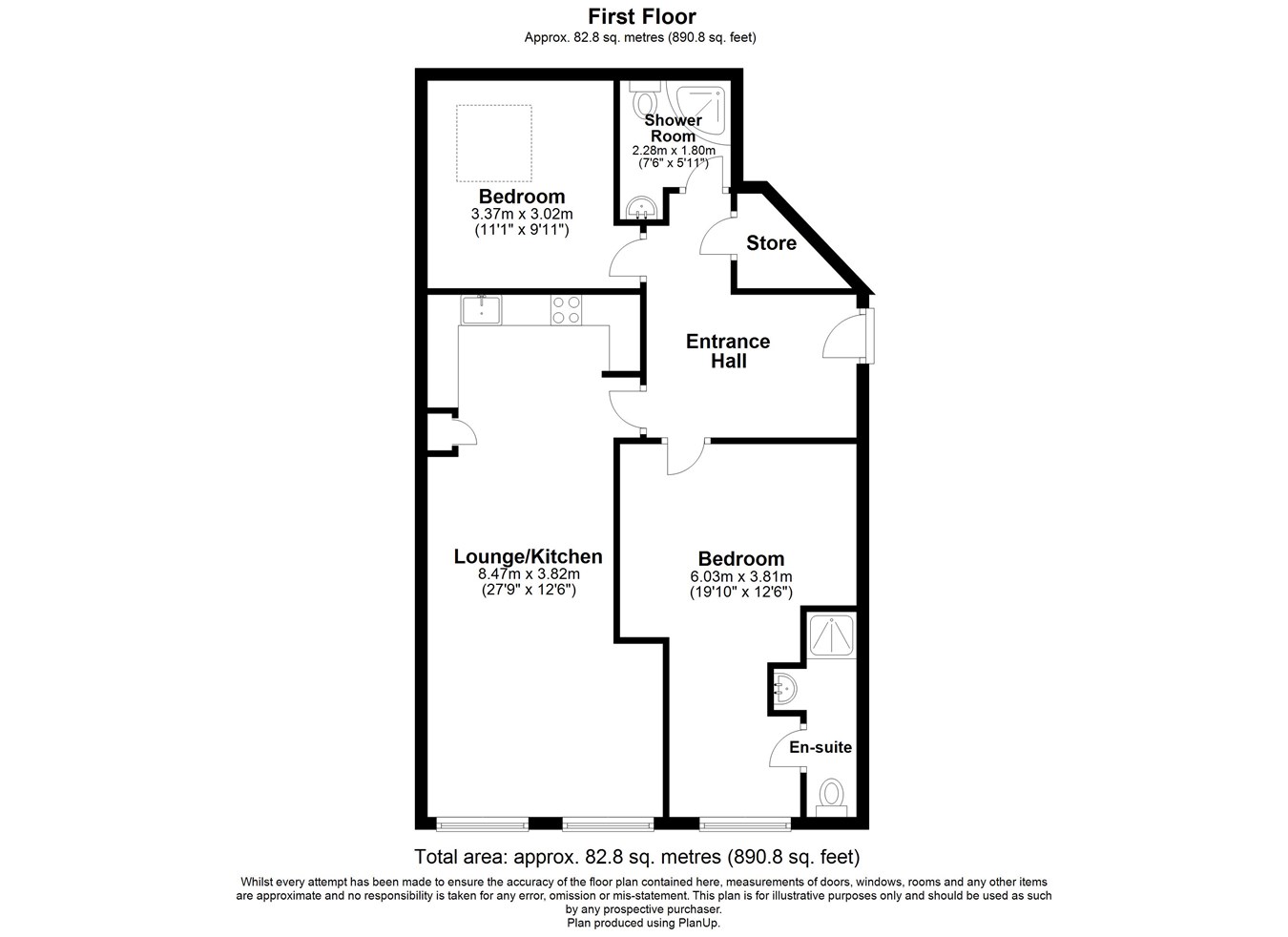 27' 8" x 12' 7" (8.43m x 3.84m)