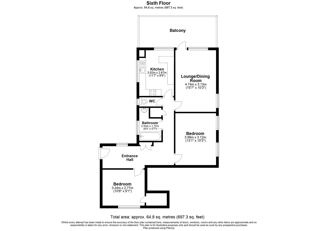 8' 4" x 5' 7" (2.54m x 1.70m)