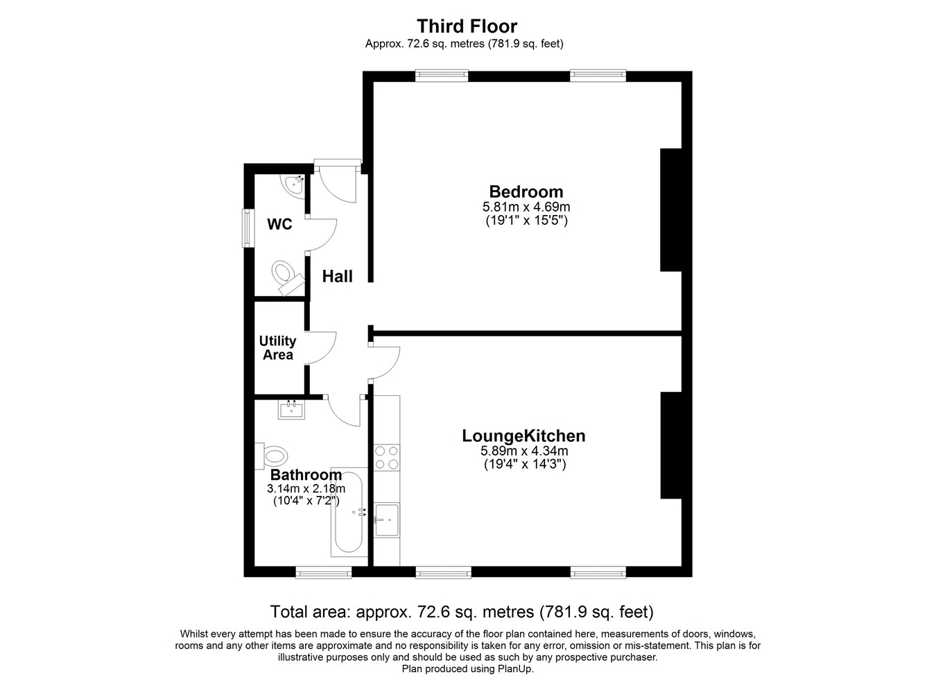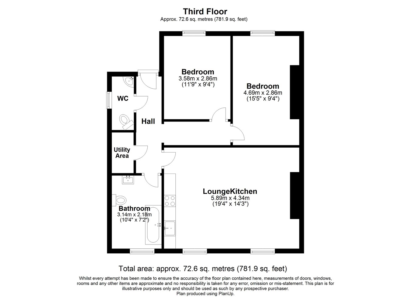 19' 4" x 14' 3" (5.89m x 4.34m)