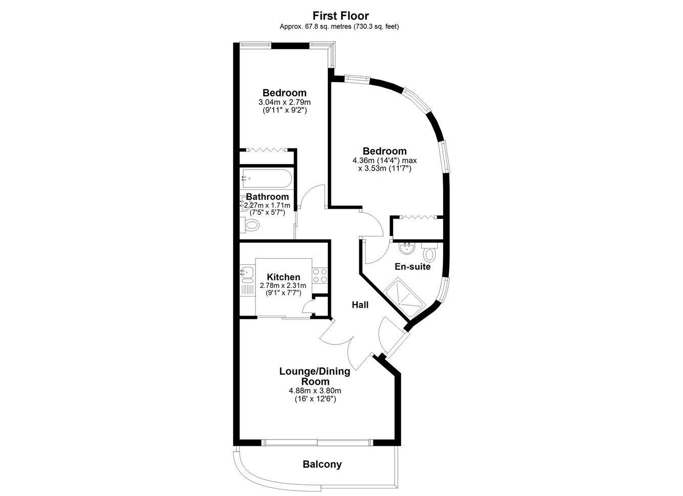 9' 1" x 7' 7" (2.77m x 2.31m)