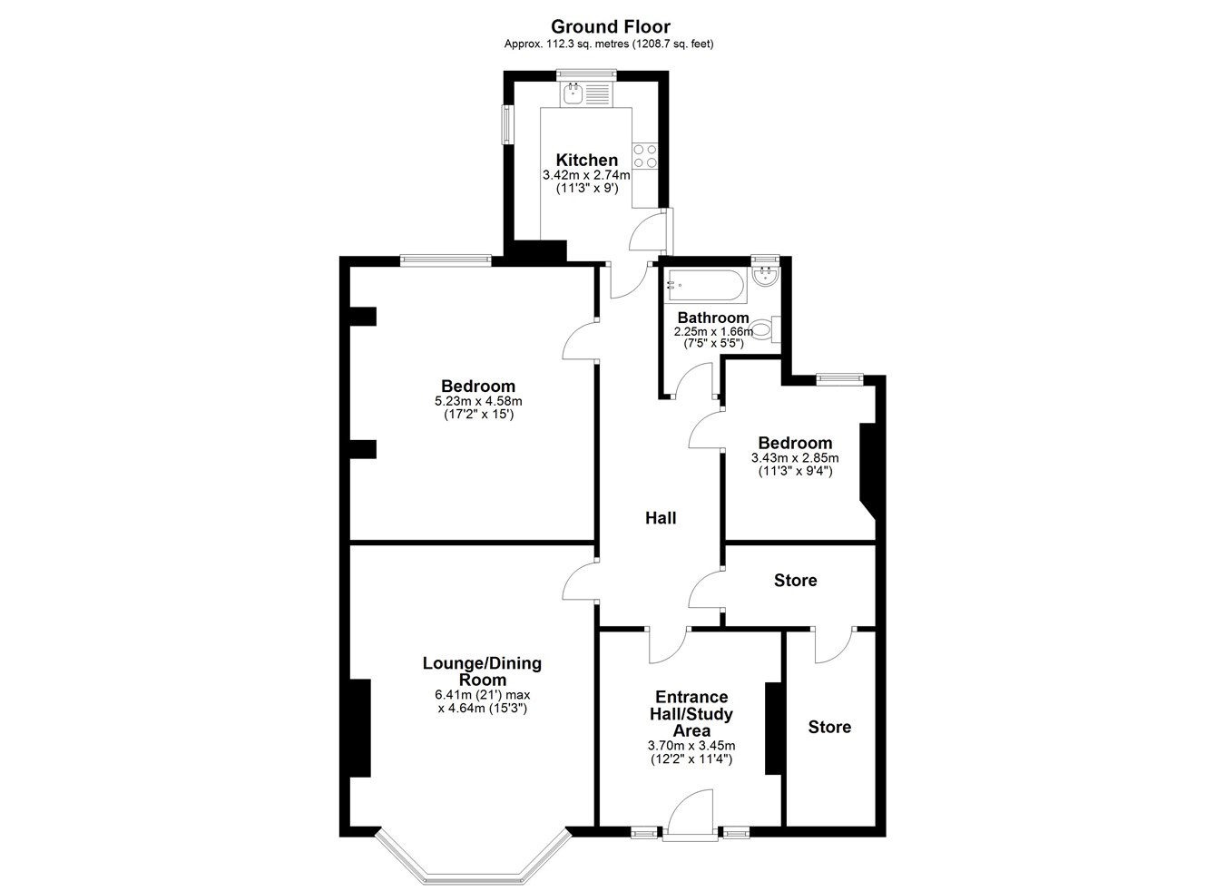 12' 2" x 11' 4" (3.71m x 3.45m)