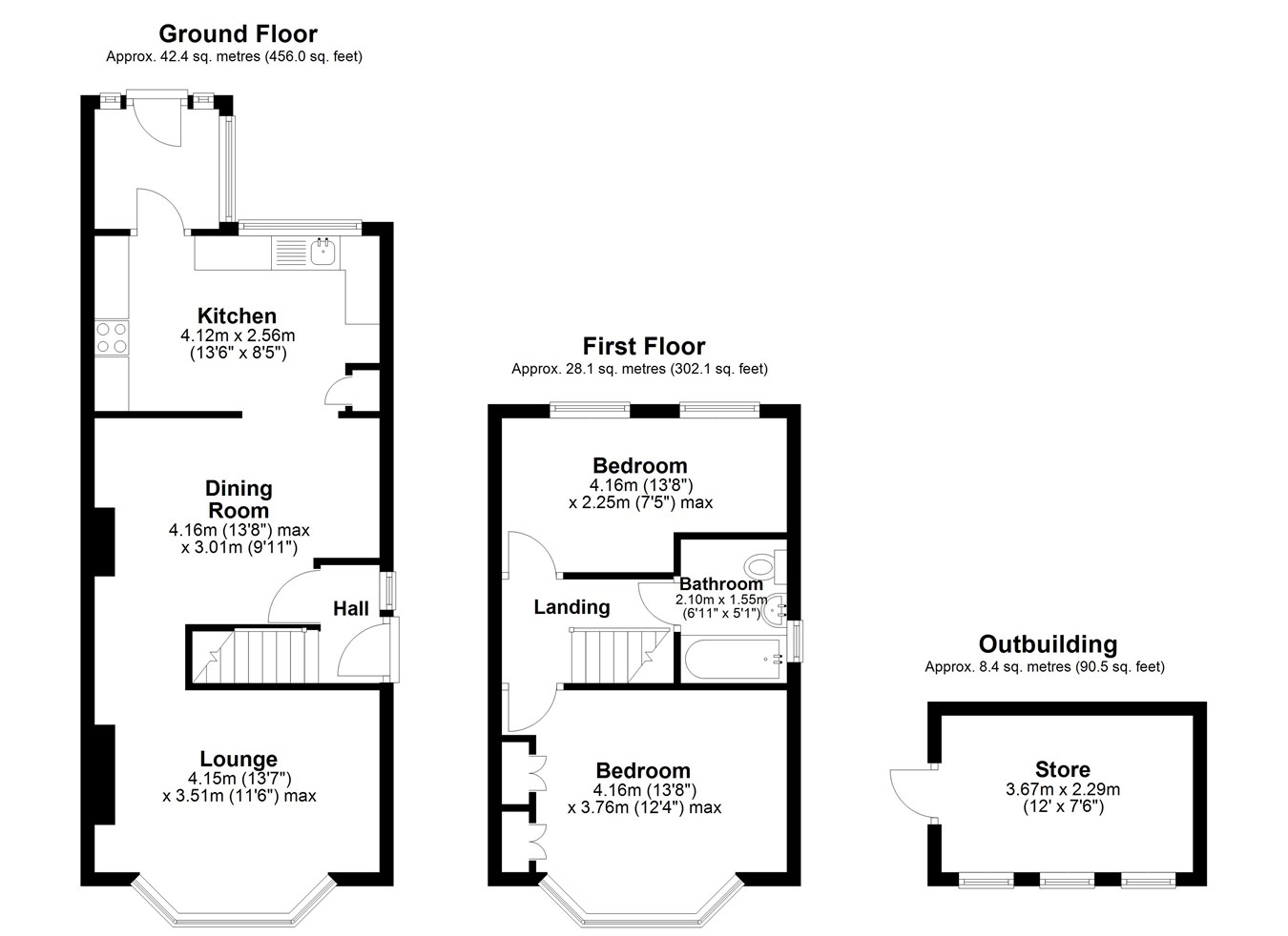 13' 6" x 8' 5" (4.11m x 2.57m)