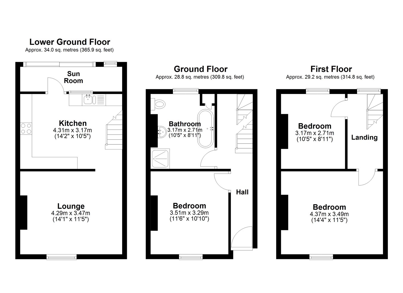 This house is arranged over three levels, boasting a spacious ground floor level kitchen/diner that opens into a large lounge. Access to a lean to and onto the low maintenance garden to the rear.