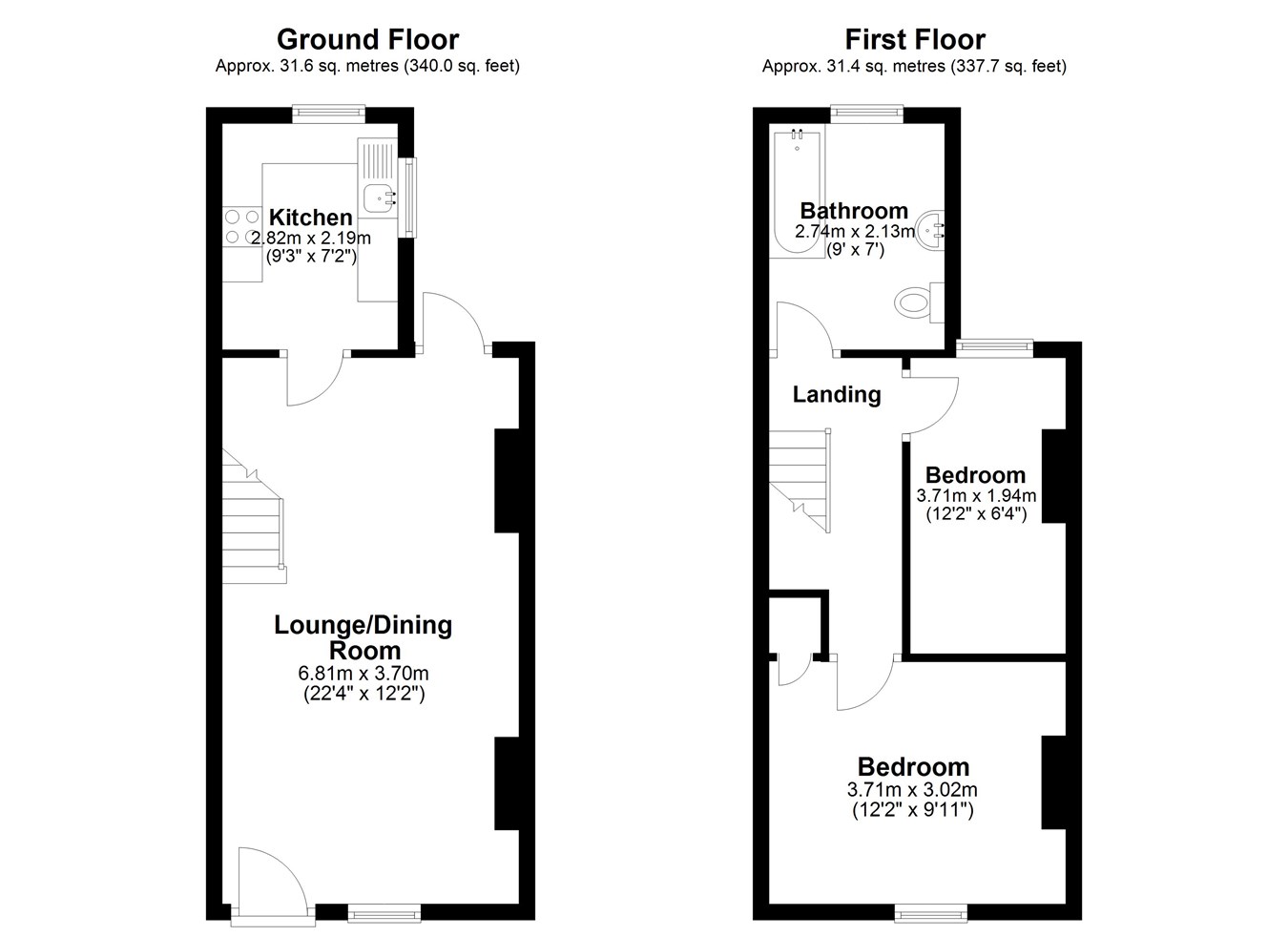 The main bedroom upstairs is a good sized double room and the second bedroom a smaller size but a good study/child's room.