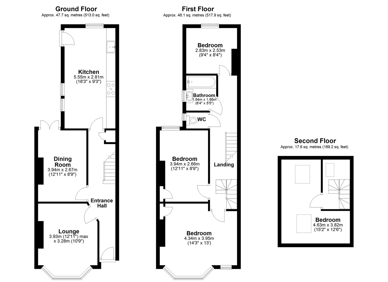 12' 11" x 8' 9" (3.94m x 2.67m)