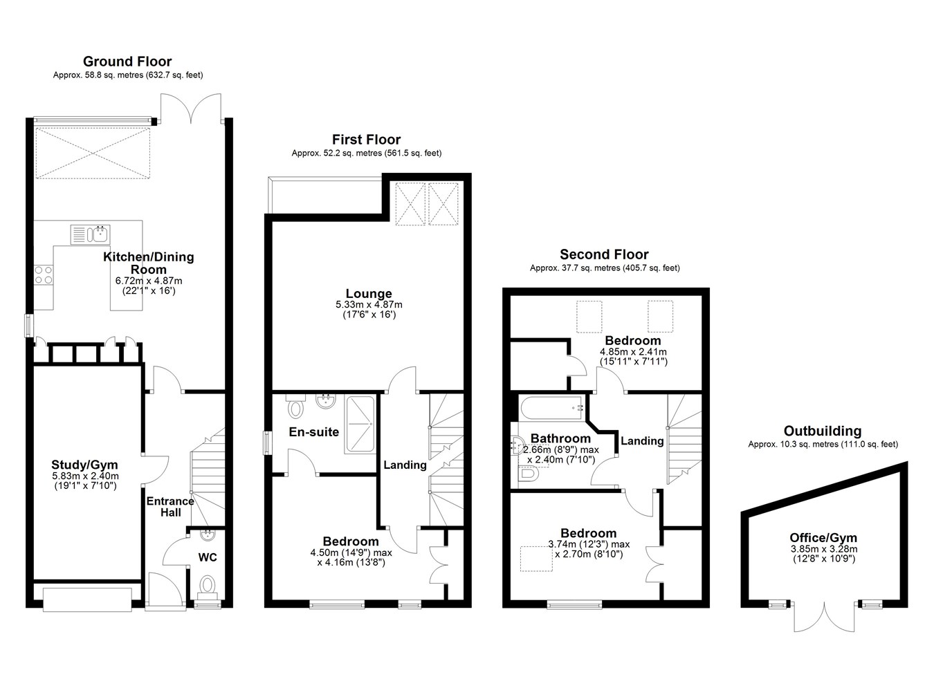 FOR SALE WITH BURNAP + ABEL... Set within a sought-after modern development in the picturesque village of Hawkinge, this beautifully presented three-bedroom semi-detached residence offers an impressive blend of space, style, and versatility across three well-appointed floors. From the moment you arrive, the property makes a statement with its extended driveway accommodating up to six vehicles, a rare and desirable feature in this location. Inside, the ground floor unfolds into a spacious and contemporary kitchen/dining area, ideal for both family meals and entertaining. A convenient W.C. is also located on this level, along with a converted garage, thoughtfully reimagined as a fully functional home office or gym—perfect for modern living and remote working needs. The first floor features a bright and airy lounge, offering elevated views and a calm retreat for relaxation. Three generous bedrooms are spread across the upper floors, including a luxurious principal bedroom with en-suite shower room, complemented by a stylish family bathroom. To the rear, a south-facing garden invites you to enjoy the sun throughout the day, complete with a bespoke external office, providing yet another flexible space ideal for professionals, creatives, or those seeking peace and privacy. This is a rare opportunity to acquire a home that seamlessly combines elegant interiors with practical enhancements, all set in a vibrant community with excellent transport links, schooling options, and countryside surroundings.
