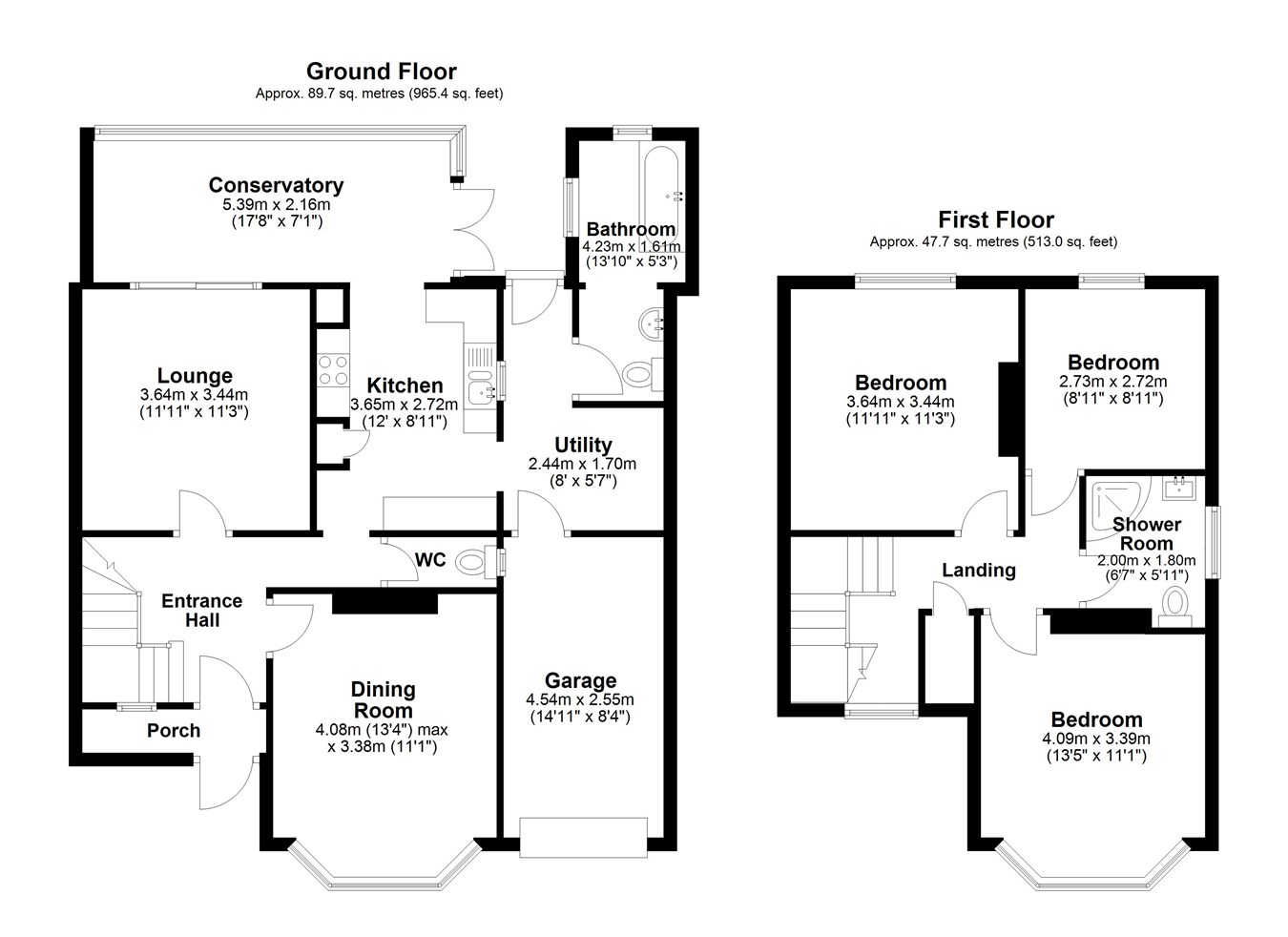 13' 4" x 11' 1" (4.06m x 3.38m)