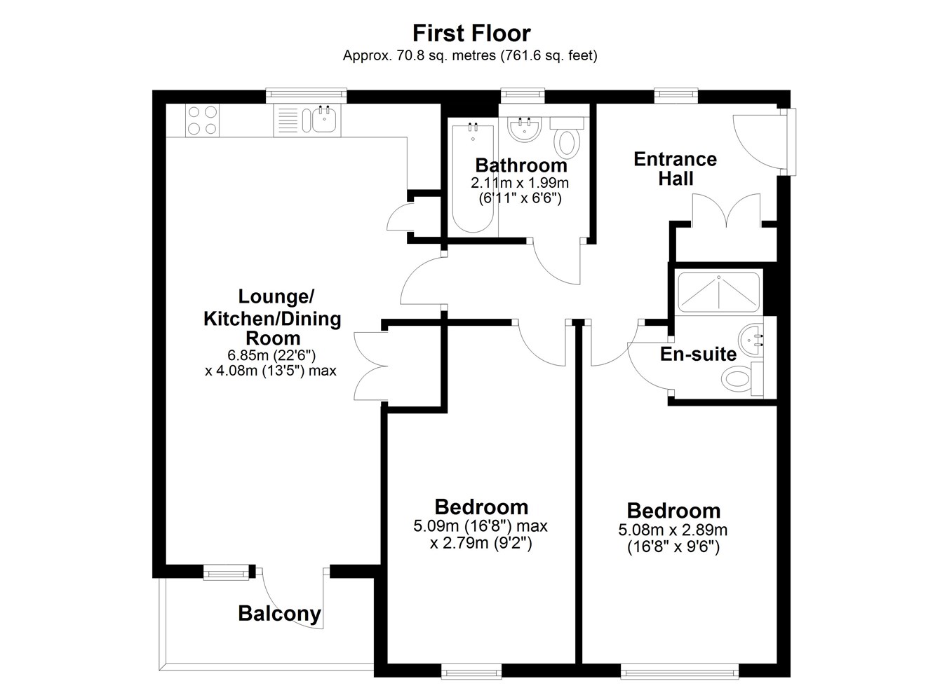 6' 11" x 6' 6" (2.11m x 1.98m)