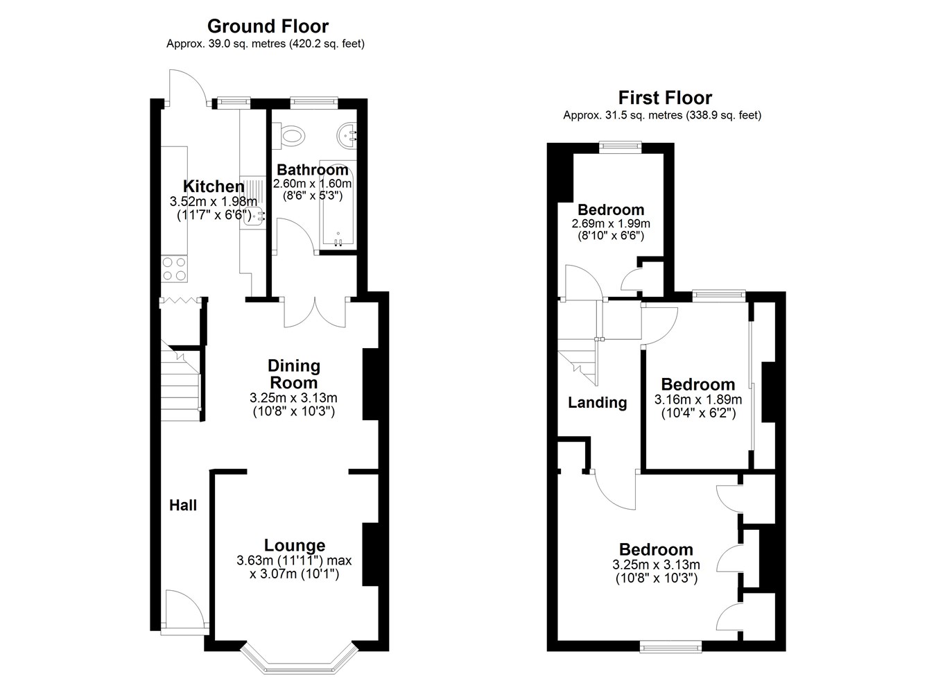 8' 6" x 5' 3" (2.59m x 1.60m)