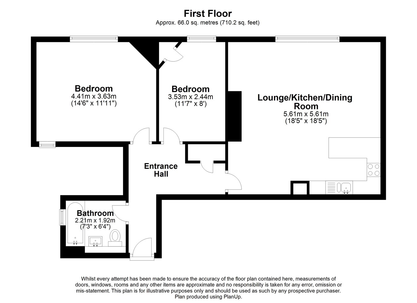 7' 3" x 6' 4" (2.21m x 1.93m)