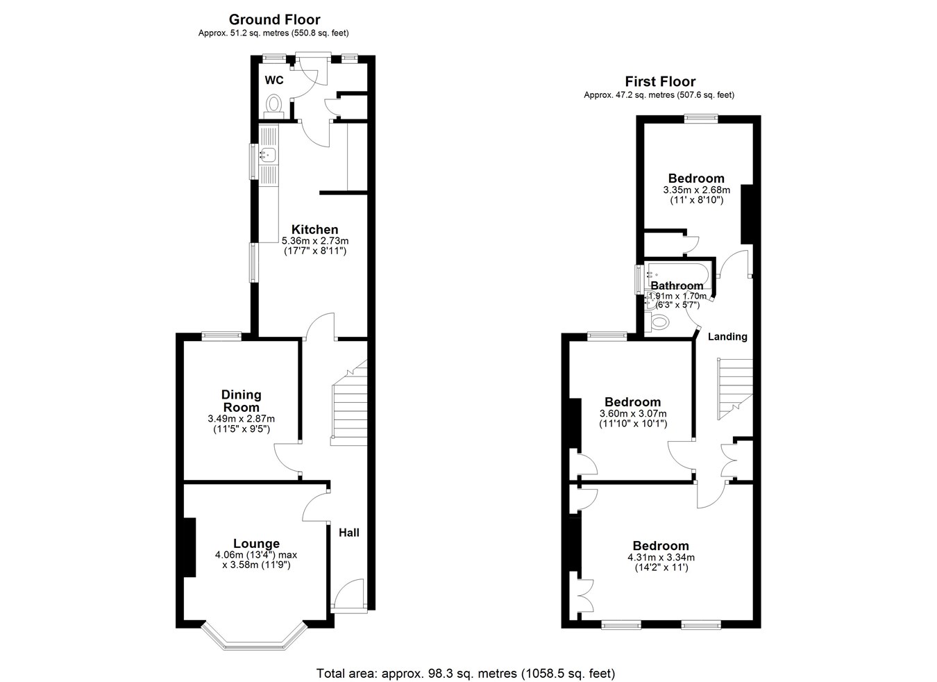 13' 4" x 11' 9" (4.06m x 3.58m)
