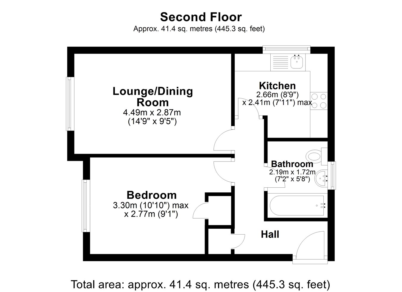 8' 9" x 7' 11" (2.67m x 2.41m)