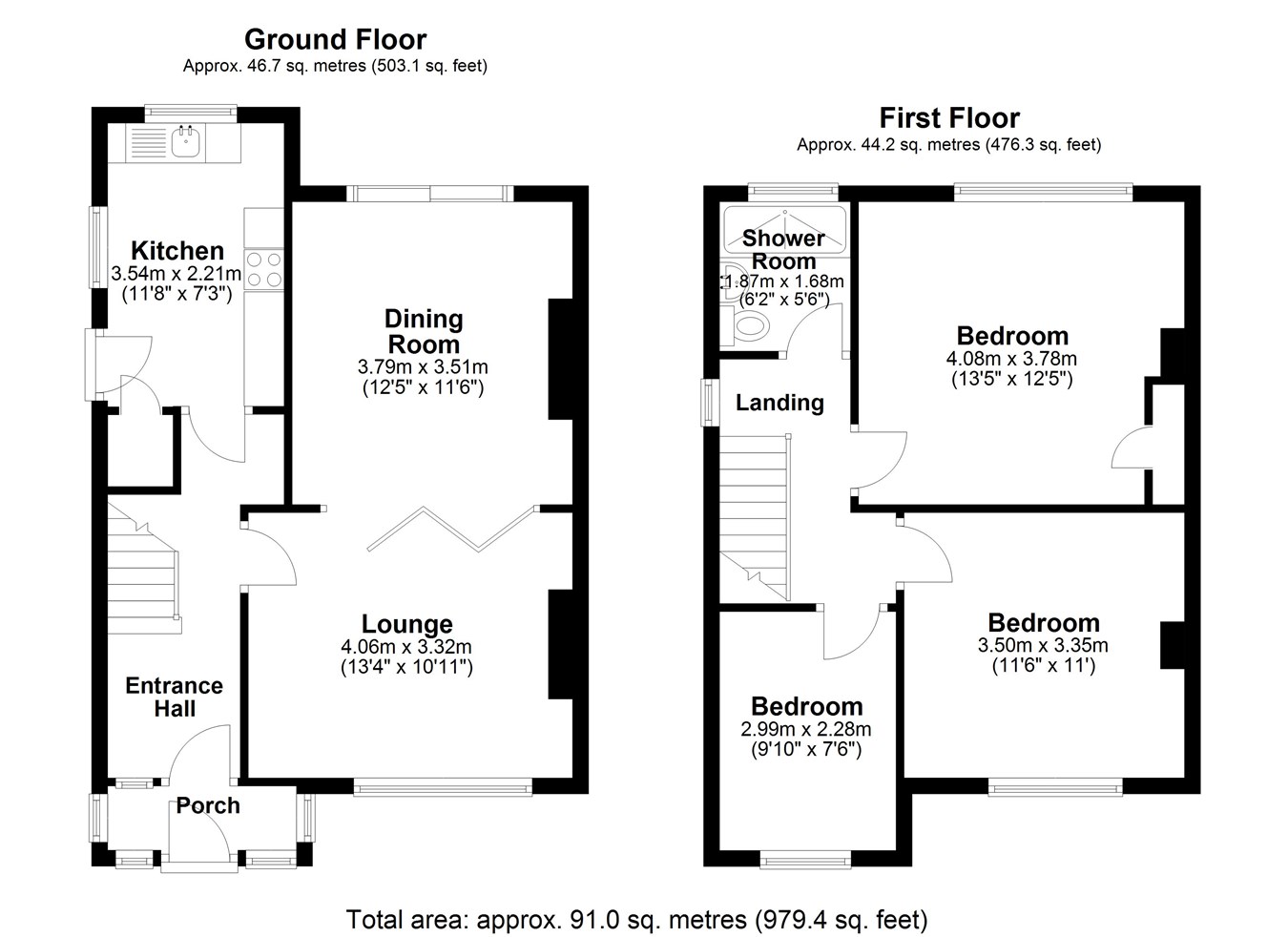 13' 4" x 10' 11" (4.06m x 3.33m)