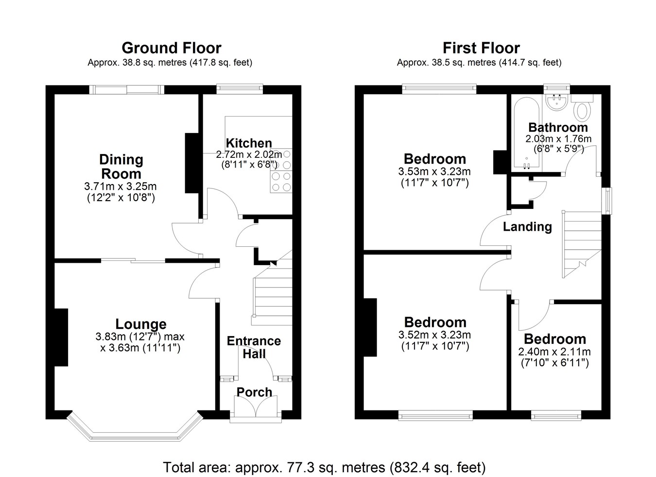 12' 2" x 10' 8" (3.71m x 3.25m)